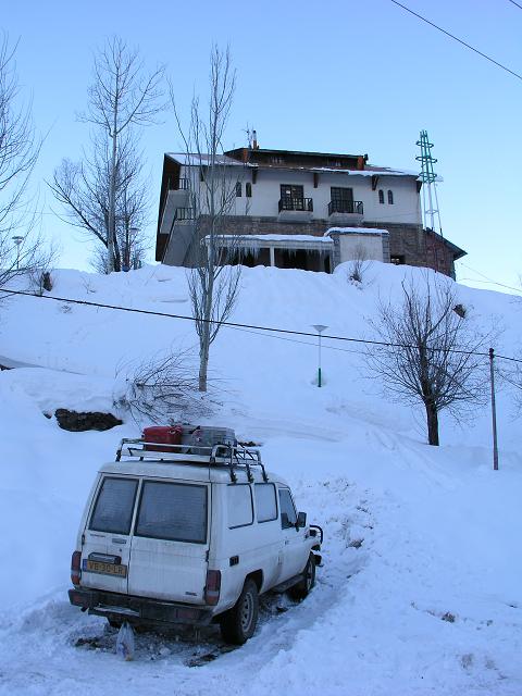 Een paar dagen skien, dat hebben we wel verdiend! Na 700 kilometer omgereden te hebben voor het kopen van servies (kosten van de diesel: 1 euro, kosten van het servies: 20 euro), en de benodigde bureaucratie doorlopen te hebben voor het verkrijgen van een visum voor Syrie (was een lastige klus omdat wij geen ingezetenen zijn van Iran en Iran geen buurland is van Syrie en we bovendien een multiple-entry visum wilden), mag het weer even vakantie zijn. Het plaatsje Shemshak, een uurtje rijden van Tehran, is het goedkoopste skiresort in het Alborz gebergte. Nu is skien in Iran in principe spotgoedkoop, maar Shi'ieten (Iraniers) en Hindu's (Indiers) hebben een aantal opvallende zaken met elkaar gemeen, waaronder het hanteren van afwijkende, lees: absurd hoge, prijzen voor buitenlanders. En dus moesten we in dit "goedkope" resort nog steeds 30 euro neerleggen voor een kamer - geen discussie over mogelijk. Gelukkig worden voor de skihuur en de skipas wel Iraanse prijzen gerekend, respectievelijk 6 en 3.50 euro per dag - een koopje, al is de kwaliteit van het gebodene in Europa waarschijnlijk strafbaar. Voor beginners is dit gebied geen aanrader en eigenlijk voor mensen die al anderhalf jaar op hun reet in een LandCruiser gezeten hebben ook niet. De pistes worden slecht of niet geprepareerd, zijn minimaal rood qua moeilijkheidsgraad en met name de stoeltjesliften (twee stuks) zijn levensgevaarlijk. Maar de fantastische poedersneeuw maakt alles goed! Het is hier een off-piste walhalla. Skien in Iran is een bijzondere gewaarwording. De regels en wetten uit het laagland gelden niet in de skigebieden. Het zijn de enige plaatsen in Iran waar wij als buitenlanders niet aangestaard, nagekeken, toegefloten of nageroepen ("Hello Mister, hello, hello, hello") worden. Mannen en vrouwen gaan minder stiekem met elkaar om. En het meest opvallende van al, vrouwen hoeven geen hoofddoeken om. Althans, de meesten volstaan met een muts of helemaal niets, en ze worden niet eens opgepakt. Blijkbaar heeft de elite hier een andere set regels afgedwongen waardoor de zedenpolitie niet optreedt tegen dit soort "onhebbelijk" gedrag. Het maakt dat wij ons in het skigebied aangenaam normaal voelen. Tweeeneenhalve dag hebben we gewerkt aan de skisprong van opdracht 10. Het resultaat is wat mager, maar jemel, wat is onze conditie slecht geworden! Meer dagen skien kan niet, simpelweg omdat de liquiditeiten dat niet toestaan. In Iran is het namelijk niet mogelijk om geld op te nemen met een pinpas of creditcard. We moeten het doen met de uit Pakistan meegebrachte dollars en euros. |
