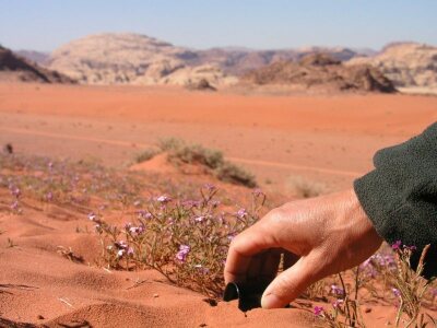 | Jordanië | Roze zand uit Wadi Rum | 15 maart 2004 | N29°27'50.0" E35°29'17.8" |